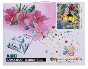 —Алмазная мозайка ДЕТСКИЙ ЛУЧ с подрамником (40 x 30 см.) ПТИЧКИ НА ВЕТКЕ арт. GB75491