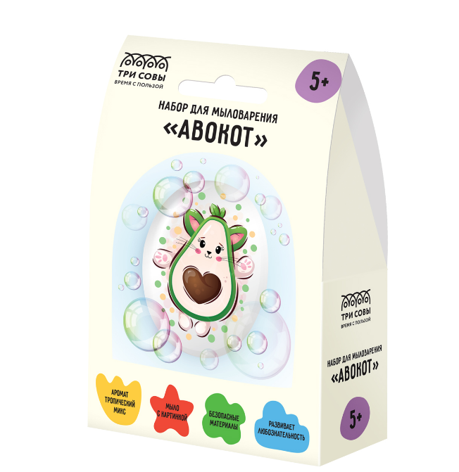 —Набор для мыловарения ТРИ СОВЫ Авокот, 1 мыло с картинкой, картонная коробка, 703