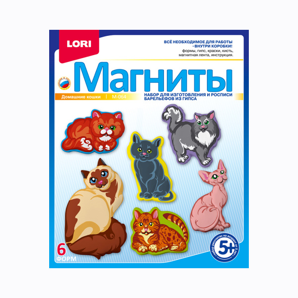 —Магниты из гипса LORI 'Домашние кошки', 6 форм, картон. уп., М-064