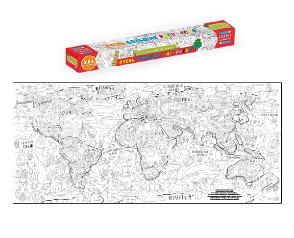 —Очень большая раскраска Проф-Пресс 'Веселая карта мира' 43х100 см.
