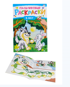 —Раскраска А4 "ПАЛЬЧИКОВЫЕ РАСКРАСКИ" В ЛЕСУ (Р-6507) 8л,на скреп,обл.-мелов.обл.,блок-офсет