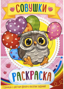 —Раскраска А4 Полипринт 'Совушки', с цветным фоном + 127 наклеек, 28114