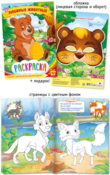 —Раскраска А4 Абсолют "Любимые животные", с цветным фоном, 27378