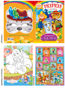 —Раскраска А4 Абсолют "Любимые сказки", с цветным фоном и наклейками, 26448