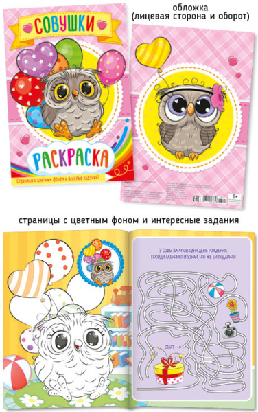 —Раскраска А4 Полипринт "Совушки", с цветным фоном, 28121