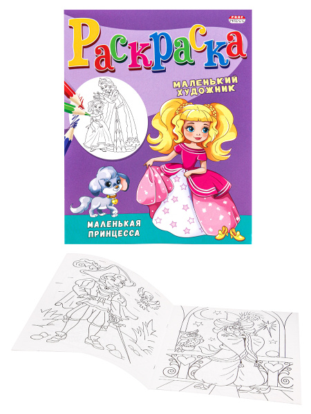 —Раскраска А4 МАЛЕНЬКАЯ ПРИНЦЕССА (Р-3495) 8л,на скреп,обл.-мелов.бумага,блок - офсет
