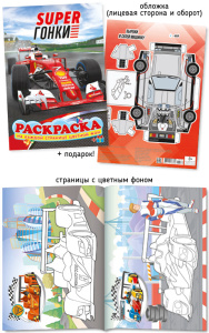 Раскраска А4 Полипринт "Супергонки", с цветным фоном, 28136