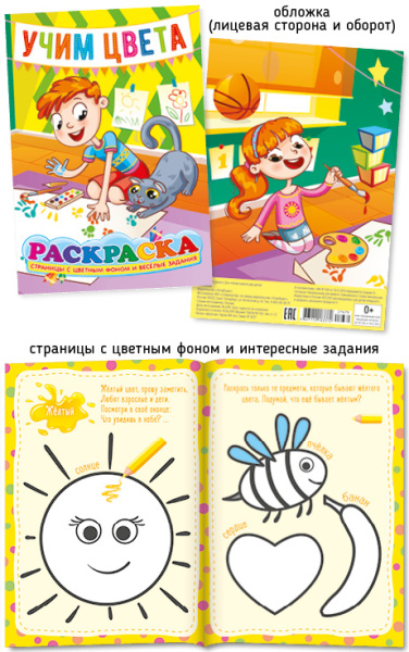 Раскраска А5 Полипринт 'Учим цвета', с цветным фоном.. 27679