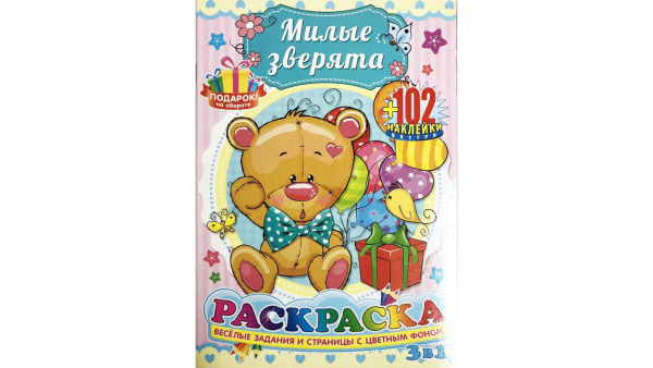 —Раскраска 3в1 А5 ПолиПринт "Милые зверята" +102 наклейки внутри, 25564