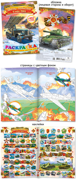 —Раскраска А5 Полипринт "День Победы", с цветным фоном + 102 наклейки 28142