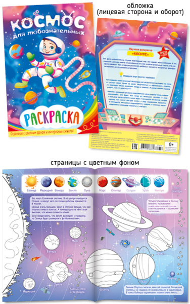 Раскраска А5 Абсолют "Космос", с цветным фоном, 27676