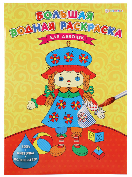 БОЛЬШАЯ ВОДНАЯ РАСКРАСКА "ДЛЯ ДЕВОЧЕК" (Р-5254)238х330, 8л+обл, обл мел, блок офс, печать 4+0, скреп