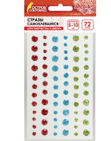 —Стразы самоклеящиеся 'Круглые', 5-10 мм , 72 шт , ассорти, 662238