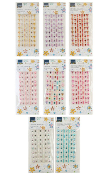 —Стразы-наклейки акриловые АССОРТИ-11, 22х9,5 см, 8 дизайнов, ОПП-упаковка с европодвесом, M-8659
