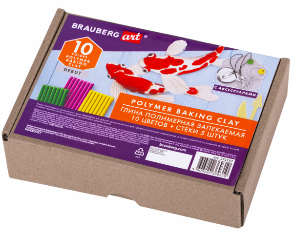 —Глина полимерная запекаемая 'BRAUBERG.ART', 10 цветов + 5 стеков, 271157