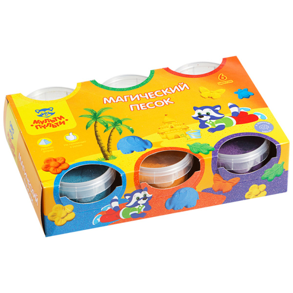 —Песок для лепки Мульти-Пульти 'Приключения Енота', 6 цветов, 840 г, 2 формочки, ПН_15815;539